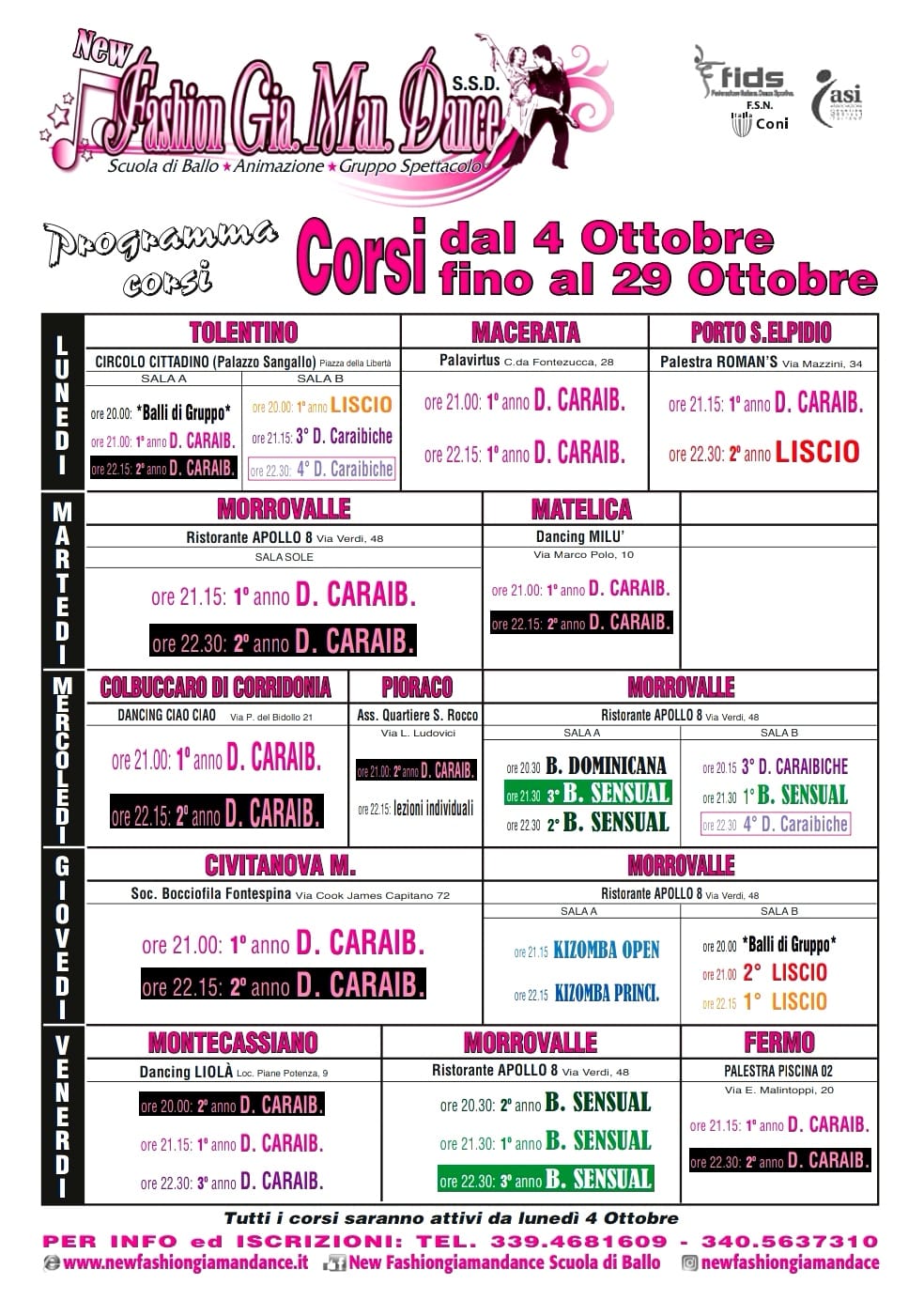 PRONTI PER RICOMINCIARE?? DAL 29 SETTEMBRE RIPARTONO I NUOVI CORSI